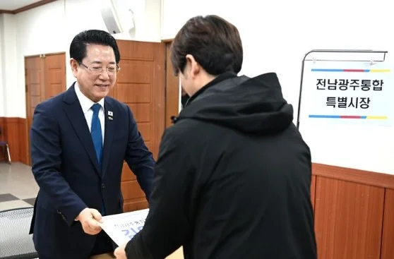 김영록 전남지사가 6·3 지방선거 전남광주통합특별시장 선거를 향한 행보에 나섰다.김 지사는 9일 오후 광주시선거관리위원회를 찾아 전남광주통합특별시장 선거 예비후보로 등록…