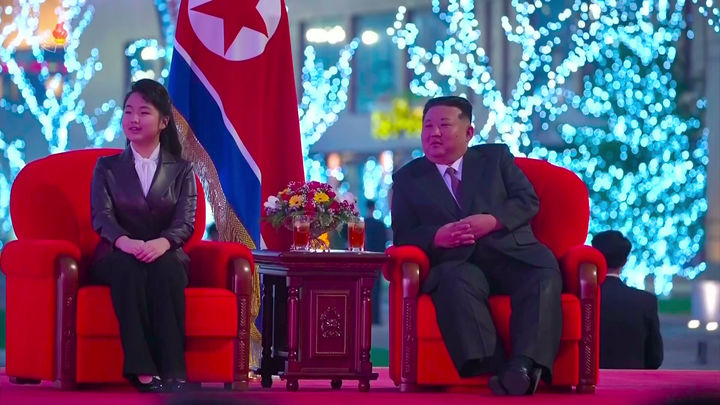 김정은 북한 국무위원장이 지난해 4월 15일 딸 주애와 평양 화성지구 3단계 1만세대 살림집(주택) 준공식에 참석했다고 조선중앙TV가 이튿날 보도했다. (사진=조선중앙T…