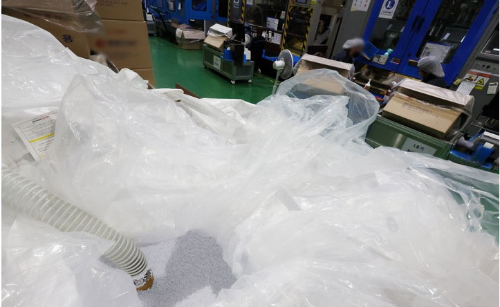 중동 사태 여파로 나프타 수급 문제가 불거진 가운데 10일 경기 부천시 오정구의 한 플라스틱 사출 업체에서 플라스틱 원료가 사용되고 있다.정부가 내일부터 나프타(납사)에서 생산된 …