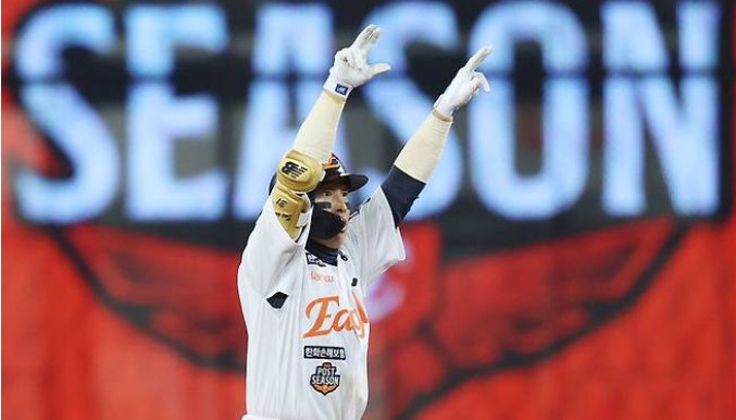 30일 대전 중구 한화생명볼파크에서 열린 2025 KBO 한국시리즈 4차전 LG 트윈스와 한화 이글스의 경기, 한화 7회말 공격 1사 주자 1루서 손아섭이 내야안타를 때리고 출루,…
