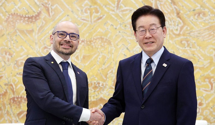이재명 대통령이 27일 청와대에서 데미스 하사비스 구글 딥마인드 CEO를 접견하며 기념촬영을 하고 있다.이재명 대통령이 27일 '알파고의 아버지'로 불리는 데미스 하사비스 구글 딥마인드 공동 창업자 겸 대표(CEO)와 만나 인공지능(AI) 분야 협력 방안을 논의했다.