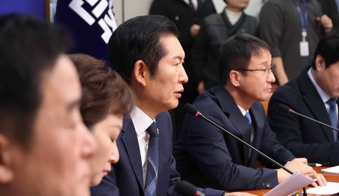 정청래 더불어민주당 대표가 12일 오전 서울 여의도 국회에서 열린 최고위원회의에서 발언을 하고 있다.