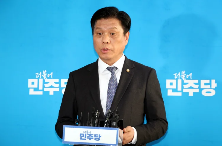 조승래 더불어민주당 사무총장이 19일 오후 서울 여의도 국회에서 '김병기 전 원내대표의 탈당계 제출' 관련 취재진의 질문에 답변하고 있다.