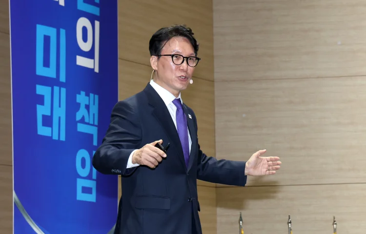 김민석 국무총리가 19일 전북 전주시 전북대학교 국제컨벤션센터에서 열린 'K-국정설명회'에 참석해 특별강연을 하고 있다. (전북사진기자단 공동취재)