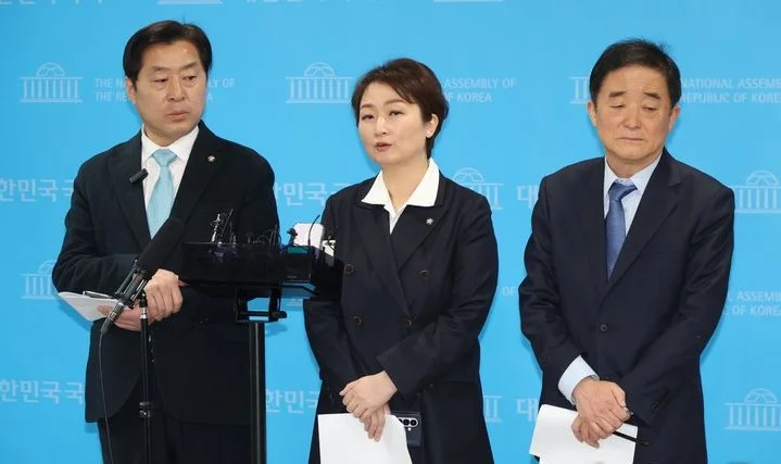 강득구·이언주·황명선 민주당 최고위원은 이날 오후 국회 소통관에서 공동 기자회견을 열고 이같이 말하며 "합당 제안을 언제, 누구랑, 어디까지, 어떻게 논의했는지 당원들에게 즉각 진상을 공개하라"고 했다.