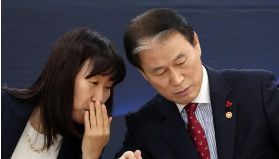 권오을 국가보훈부 장관이 14일 세종시 정부세종청사에서 열린 보훈부 산하기관 업무보고에서 강윤진 차관과 대화하고 있다권오을 국가보훈부 장관이 10억8539만원의 재산을 보유한 것으로 나타났다.