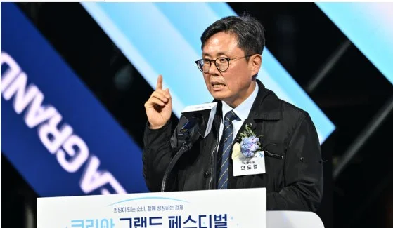 더불어민주당 안도걸 의원이 28일 오후 광주 동구 국립아시아문화전당 하늘마당에서 열린 코리아그랜드페스티벌 개막식에 참여해 축사를 하고 있다.