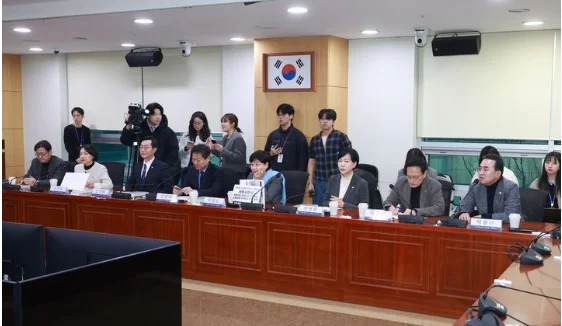 더불어민주당 김영배, 서영교, 전현희, 박주민, 박홍근 등 의원들이 9일 서울 여의도 국회 의원회관에서 열린 전국장애인차별철폐연대와의 대화에 참석하고 있다.