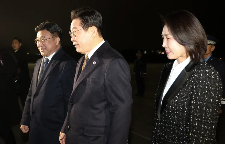 일본 순방 일정을 마친 이재명 대통령과 김혜경 여사가 14일 경기 성남 서울공항에 도착해 윤호중 행정안전부 장관의 안내를 받으며 이동하고 있다.이재명 대통령이 1일 싱가포르와 필리핀 국빈 방문을 위해 순방길에 오른다.