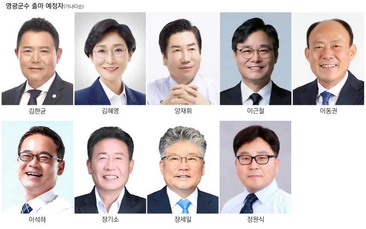 제9회 전국동시지방선거 영광군수 출마 예정자들. 가나다순. (그래픽=최희영)