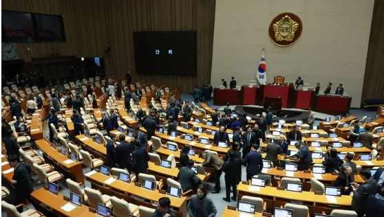 1일 서울 여의도 국회에서 열린 제432회국회(임시회) 제8차 본회의에서 산회 후 더불어민주당 등 의원들이 회의장을 나서고 있다.