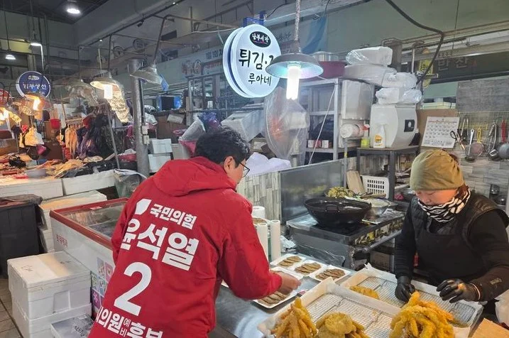 본래 국민의힘 예비후보로 등록했던 그는 2022년 대선 당시 윤석열 전 대통령의 선거운동을 연상시키는 국민의힘의 붉은 점퍼를 입고 나타났다. 윤석열 전 대통령의 과거 모습과 마찬가지로 기호 2번이 적힌 점퍼를 입은 그는 포항 남부시장에서 명함을 돌리고, 시민과 함께 반찬을 만들었다.