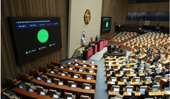 22일 서울 여의도 국회에서 열린 본회의에서 윤석열 정권 정치검찰 조작기소 의혹 사건 진상규명 국정조사계획서 승인의 건이 가결되고 있다.더불어민주당이 추진해 온 이른바 '윤석열 정권 정치검찰 조작기소(이하 조작기소)' 관련 국정조사 계획서가 국회 본회의 문턱을 넘었다.