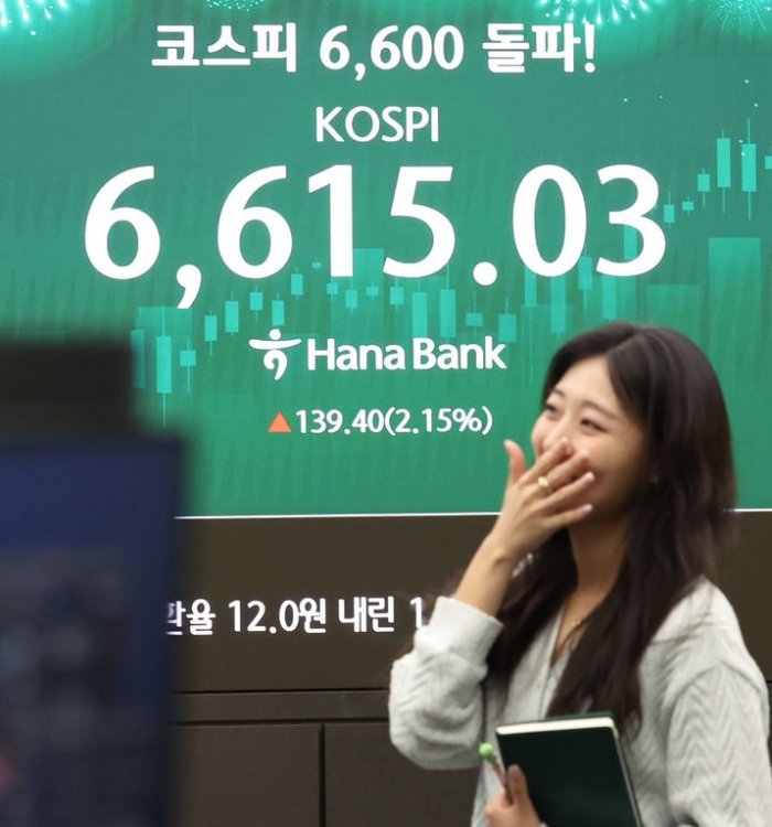 코스피, 2.15% 상승한 6615.03 마감…사상 첫 6600선 안착