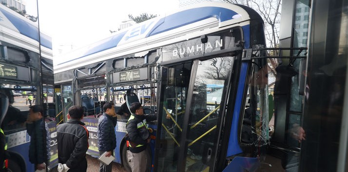 16일 오후 서울 서대문구 서대문역사거리에서 버스가 인도로 돌진한 사고가 발생해 경찰과 소방당국이 현장 수습을 하고 있다.