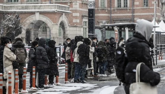 서울 지역에 대설주의보가 내려진 가운데 26일 오전 서울역 택시승강장에서 출근하는 시민들이 택시를 타기 위해 기다리고 있다
