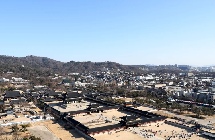 맑고 청명한 날씨를 보인 23일 오전 서울 종로구 경복궁 위로 파란하늘이 보이고 있다. 26일 목요일은 낮 최고기온이 15도까지 오르며 포근하겠다. 다만 낮과 밤의 기온차가 크겠으니 건강관리에 유의해야겠다.