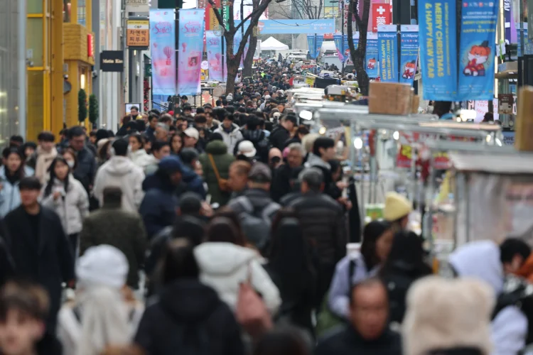 크리스마스 이브인 24일 오후 서울 중구 명동거리가 인파들로 붐비고 있다.한국인이 스스로 평가하는 주관적 행복 순위가 2024년 이후 꾸준히 하락하며 전 세계 중위권에 머물고 있는 것으로 나타났다.