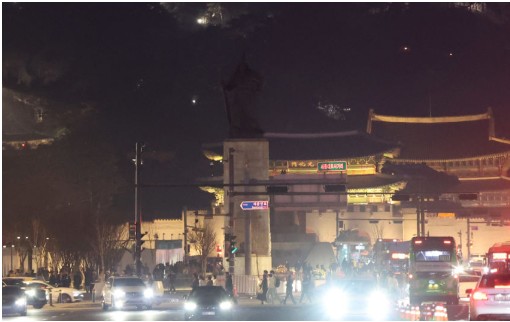WWF(세계자연기금) 지구촌 전등 끄기 캠페인 '어스아워(Earth Hour)'가 진행된 28일 오후 서울 중구 서울광장에서 바라본 광화문광장 이순신 장군 동상을 밝히던 조명이 꺼져 있다. 어스아워는 기후 위기와 자연 파괴의 심각성을 알리기 위해 1시간 동안 불을 끄며 함께 행동에 나서자는 취지로 2007년 호주 시드니에서 시작해 현재 전 세계 180여 개국이 함께하는 세계 최대 자연보전 캠페인이다.