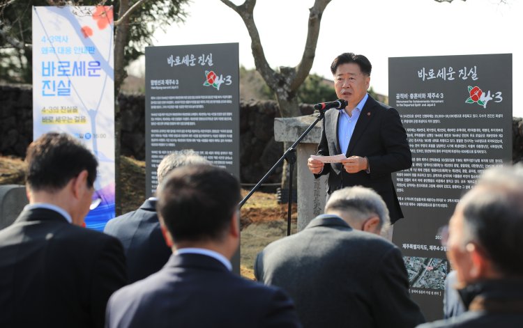 이 자리에서 오 지사는 "4·3의 역사적 사실을 왜곡하거나 폄훼하려는 시도에 대응하기 위한 조치"라며 "관련 시설물에 대한 안내판 설치와 이전을 단계적으로 추진하겠다"고 밝혔다.
