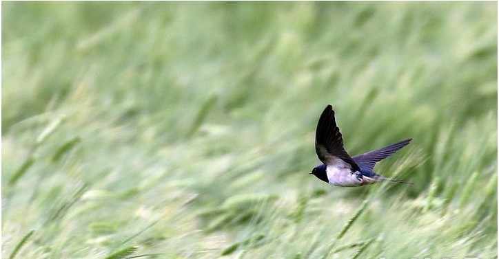 봄의 마지막 절기 '곡우'인 20일 오전 제주시 이호동의 한 보리밭 위에서 제비가 먹이활동을 하고 있다.