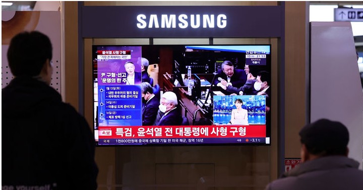 특검이 12·3 비상계엄 관련 내란 우두머리 혐의를 받는 윤석열 전 대통령에 사형을 구형한 13일 오후 서울역 대합실에서 시민들이 관련 뉴스를 시청하고 있다