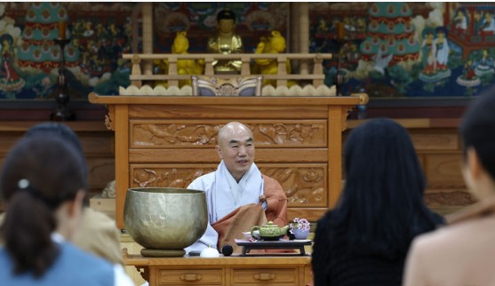 8일 서울 강남구 봉은사 보우당에서 열린 제2기 뉴시스 여성 CEO 리더십 아카데미 8회차에서 일감 스님(대한불교조계종 미래본부 사무총장)이 선명상 강연을 하고 있다.