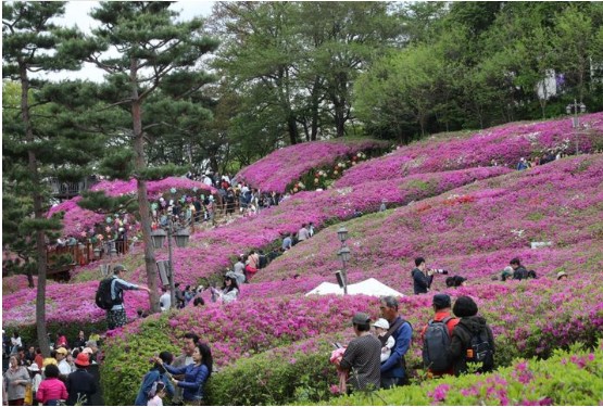 벚꽃이 진 자리를 대신하듯 철쭉이 일제히 피어나며 도심 한가운데 언덕과 공원이 화려한 봄 풍경으로 탈바꿈한다.