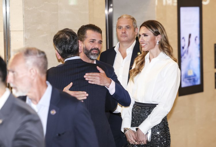 두 사람이 다시 모습을 드러낸 시간은 오후 9시8분께, 트럼프 주니어가 먼저 연인 베티나 앤더슨의 손을 잡고 퇴장했다.