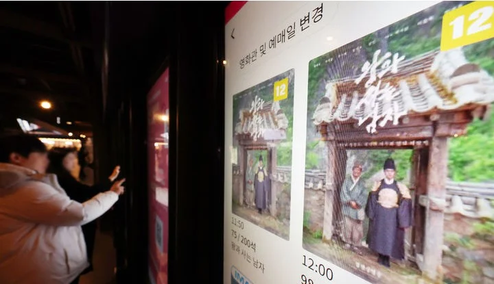 영화 '왕과 사는 남자'가 지난 4일 개봉한 이후 18일 만에 500만 관객을 돌파했다. 22일 서울 시내의 한 영화관에서 '왕과 사는 남자' 작품을 비롯한 상영 영화 정보가 티켓 발권기 화면에 표시되고 있다.