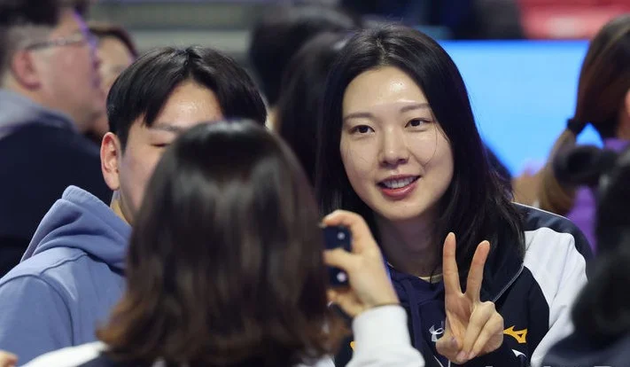 24일 강원 춘천시 호반체육관에서 열린 진에어 2025~2026 V-리그 올스타전 사전행사에서 올스타 양효진이 팬들과 사진을 찍고 있다.