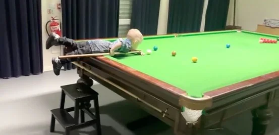 당구대에 닿기 위해 발판용 의자가 필요한 두 살배기 소년이 놀라운 스누커 실력으로 기네스 세계기록 보유자가 됐다.
