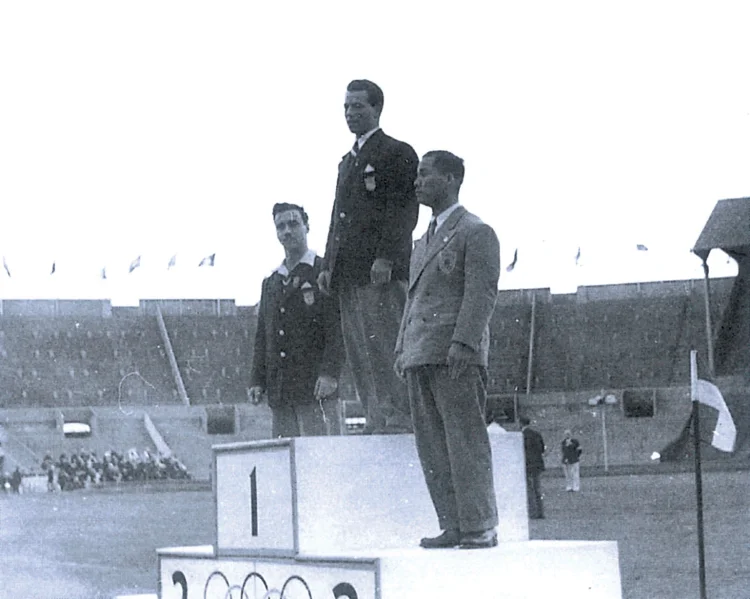1948년 런던올림픽 시상식에서 고(故) 김성집 선생. (사진 = 대한체육회 제공)