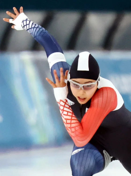 15일 (현지 시간) 이탈리아 밀라노 스피드스케이팅 스타디움에서 열린 2026 밀라노·코르티나 담페초 동계올림픽 스피드 스케이팅 여자 500m 경기에서 이나현이 역주하고 있다.