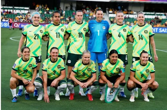 호주 여자축구 대표 선수들이 13일(현지 시간) 호주 퍼스 렉탱귤러 스타디움에서 열리는 2026 아시아축구연맹(AFC) 여자 아시안컵 8강전 북한과 경기를 앞두고 기념 촬영하고 있다. 호주가 북한을 2-1로 꺾고 4강에 진출했다