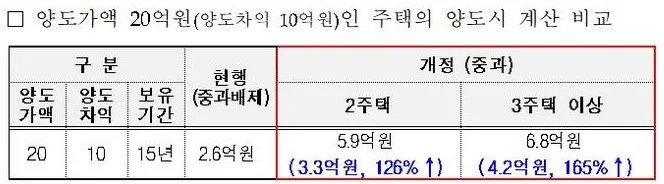 임광현 국세청장이 3일 자신의 페이스북 계정에 공개한 다주택자 양도세 중과 시뮬레이션
