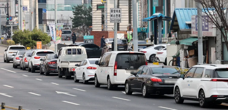 미국과 이스라엘의 이란 공습에 따른 중동 정세 불안 여파로 국내 주유소 기름값 상승세가 이어지고 있는 9일 서울 구로구의 한 최저가 주유소에 주유하려는 차량들이 길게 줄지어 서 있다. 국내 기름값이 9일 연속 상승세를 이어가며 전국 휘발유 평균 가격이 리터당 1900원을 넘어섰다. 한국석유공사 유가정보시스템 오피넷에 따르면 이날 오후 1시30분 기준 전국 평균 휘발유 가격은 리터당 1900.7원으로 전날보다 5.3원 올랐다.