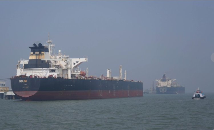 사우디아라비아에서 원유를 싣고 호르무즈 해협을 통과한 라이베리아 국적의 유조선 선룽 수에즈 막스호가 12일 인도 뭄바이항에 입항하고 있는 모습이 포착됐다. 이란이 국제해사기구(IMO) 회원국에 비적대적 선박은 자국 협조하에 호르무즈 해협을 통과할 수 있다는 내용의 서한을 보낸 것으로 드러났다.