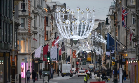 영국 런던에 있는 명품 쇼핑가 뉴 본드 스트리트. 자료사진영국 체감경기를 반영하는 2026년 2월 소매 매출액(속보치)은 수량 기준으로 전월 대비 0.4% 감소했다고 마켓워치와 BBC, RTT 뉴스 등이 27일 보도했다.