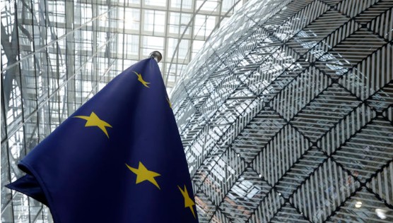 지난해 6월 17일(현지 시간) 벨기에 브뤼셀 소재 유럽 이사회 청사에 유럽연합(EU) 깃발이 걸려 있다.정부가 유럽연합(EU) 탄소국경조정제도(CBAM) 확정기간 시행에 대비해 우리 기업의 대응을 지원하는 실무 지침서를 발간했다.
