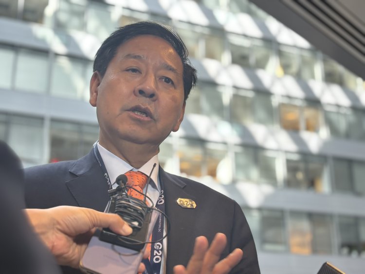 구윤철 경제부총리 겸 재정경제부 장관이 17일(현지 시간) 미국 워싱턴DC 국제통화기금(IMF) 청사에서 주요 20개국(G20) 재무장관·중앙은행총재 회의를 계기로 특파원들을 만나 질문에 답변하고 있다.