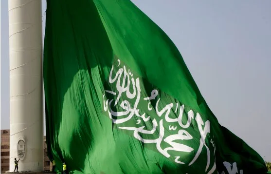 2021년 1월28일 사우디아라비아 지다의 압둘라 광장에서 폭 49.5m, 높이 33m의 거대한 사우디 국기가 내려지고 있다. 사우디는 자국에 지역본부를 두는 외국 기업들에 대해 30년 간 법인세를 면제하는 등 세제 혜택을 제공할 것이라고 5일 밝혔다고 인디아 타임스가 이날 보도했다.