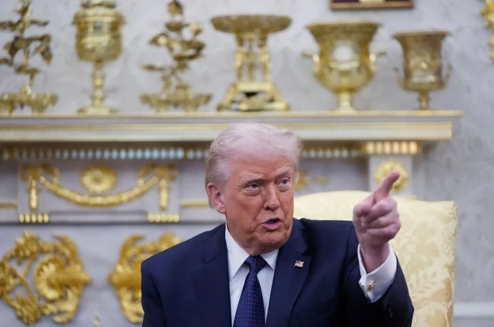 도널드 트럼프 미국 대통령이 지난 3일(현지 시간) 백악관 집무실에서 프리드리히 메르츠 독일 총리와 양자회담에 앞서 취재진 질문에 답하고 있다. 미국의 대(對)이란 군사작전이 엿새째 접어든 5일(현지 시간) 도널드 트럼프 미국 대통령이 이란의 차기 지도자 선출 과정에 자신이 직접 관여하겠다는 의사를 드러냈다. 후계자로 거론되는 모즈타바 하메네이는 용납불가라는 입장이다.