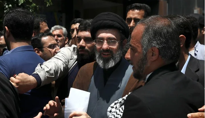 이란 최고지도자 아야톨라 알리 하메네이의 차남 모즈타바 하메네이(가운데)가 2019년 5월31일 이란 테헤란에서 연례 쿠즈, 즉 예루살렘의 날 집회에 참석한 모습.
