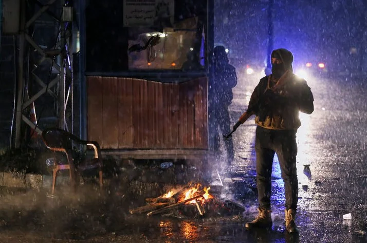 지난달 22일(현지 시간) 시리아 북동부 카미실리에서 무장한 쿠르드 자원병들이 야간 순찰 중 모닥불을 쬐면서 검문소를 지키고 있다. 사우디아라비아 매체 알아라비야는 트럼프 대통령이 이날 로이터와 전화 인터뷰에서 쿠르드족의 이란 공격 개시에 대해 "그들이 그렇게 하려는 것은 훌륭한 일이라고 생각한다"고 밝혔다고 전했다.