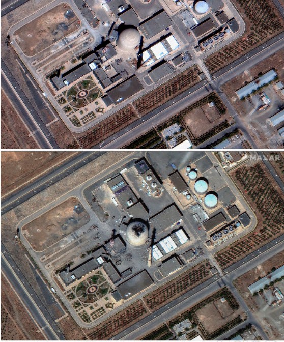 맥사 테크놀로지스가 지난해 6월18일(현지 시간) 제공한 위성 조합 사진에 이스라엘의 공습 이전, 이란의 아라크 중수로 시설(위)과 공습 이후의 모습(아래)이 보인다. 2026.03.28