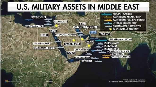미 해군이 호르무즈 해협 이란 항고 봉쇄 작전에 돌입한 13일(현지 시간) 최소 17척의 함정이 일대에 배치됐다고 미 폭스뉴스가 보도했다. (사진=폭스뉴스 캡쳐).