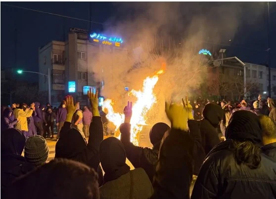 지난 9일(현지 시간) 이란 테헤란에서 주민들이 도로를 점거하고 반정부 시위를 벌이고 있다.
