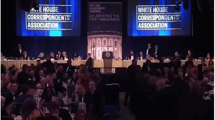 지난 25일(현지시각) 워싱턴 D.C. 힐튼호텔에서 열린 백악관 출입기자단 만찬 행사 도중 총성으로 추정되는 폭음이 여러 차례 들렸다. 환영사가 종료된 뒤 발생한 소동에 참석자들은 의자 밑으로 몸을 피하거나 이동하는 등 장내가 한때 소란스러워졌다. 트럼프 대통령은 상황을 지켜보다가 경호를 받으며 이동했다.