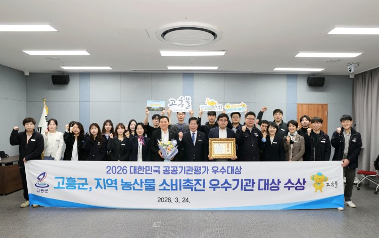 고흥군(군수 공영민)은 지난 24일 국회의원회관 대회의실에서 열린 ‘2026년 대한민국 공공기관평가 시상식’에서 지역 농산물 소비 촉진 우수기관으로 선정돼 우수대상을 수상했다고 밝혔다.